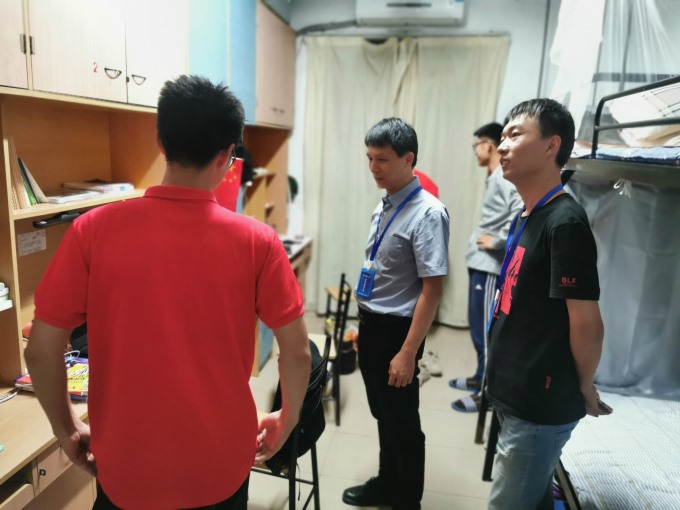 座谈会结束后,项延训在王玉琳、唐光泽的陪同下走访了新生寝室,询问了同学们的日常生活并嘱咐他们要合理安排作息,努力学习、加强锻炼。